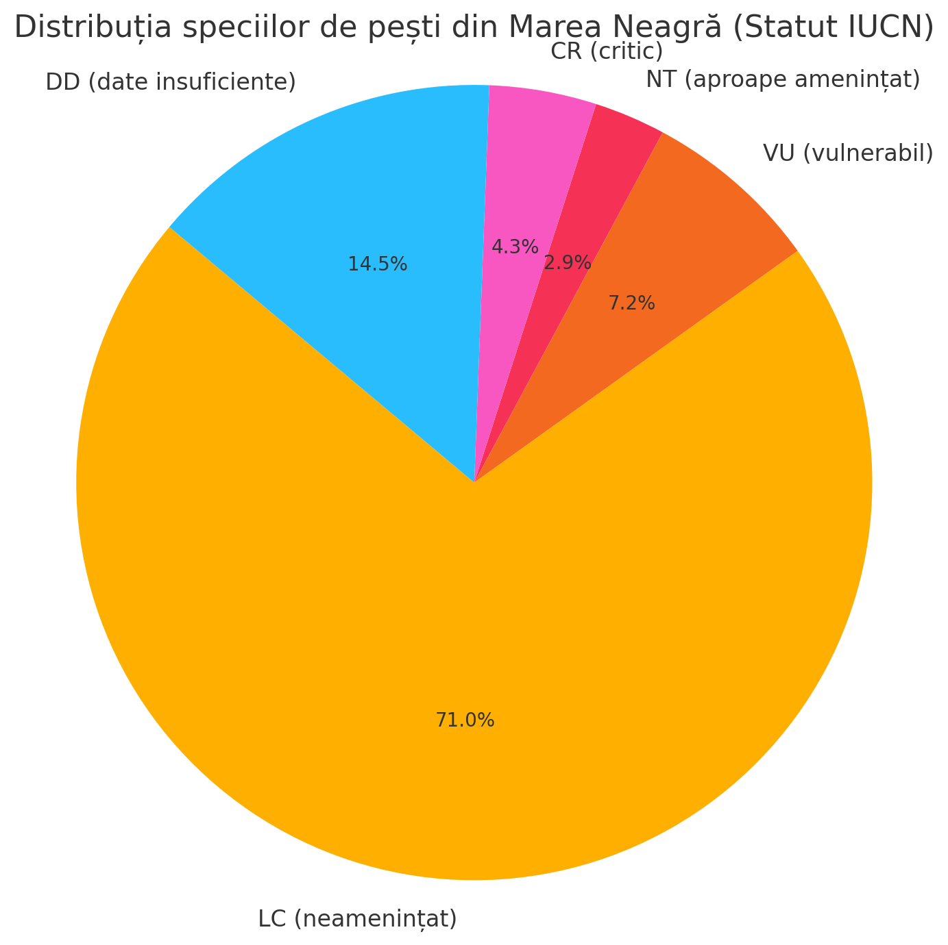 Reprezentarea vizuală a distribuției acestor specii pe categorii IUCN: Distribuția speciilor de pești din Marea Neagră (IUCN)