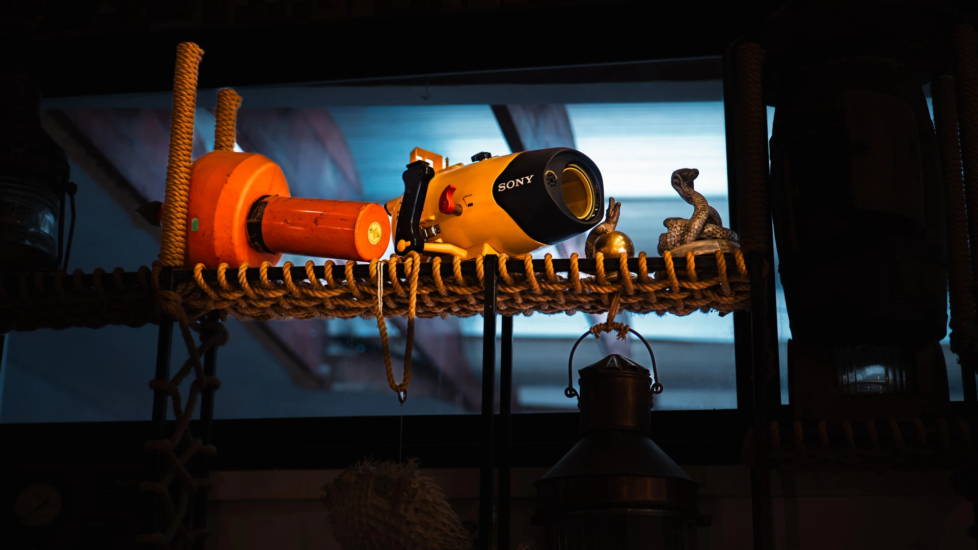 Această carcasă de cameră subacvatică, produsă de Spirotechnique, era utilizată în explorări marine și operațiuni subacvatice. Sistemul este echipat cu alimentare de la suprafață, iar tehnologia optică și electronică a fost dezvoltată de Thomson-CSF, asigurând imagini clare chiar și la mare adâncime. Dotată cu mâner ergonomic și compensator de flotabilitate, permitea un control stabil sub apă. Un exemplu remarcabil de inovație în tehnologia scufundărilor, acum expus la Terasa cu Ancore.