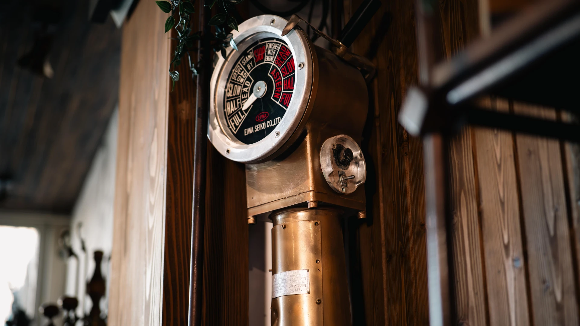 Acest sistem manual de comandă pentru motoarele principale ale navelor era utilizat pentru a transmite ordine către sala motoarelor. Fabricat de Eiwa Seiko Co. Ltd., acest model englezesc a fost o piesă esențială în navigația maritimă tradițională, fiind înlocuit în prezent de sisteme electronice avansate. Cu un design robust și precis, acest dispozitiv a jucat un rol crucial în siguranța și eficiența manevrelor navale. Acum, este o relicvă impresionantă a ingineriei maritime clasice, expusă la Terasa cu Ancore.