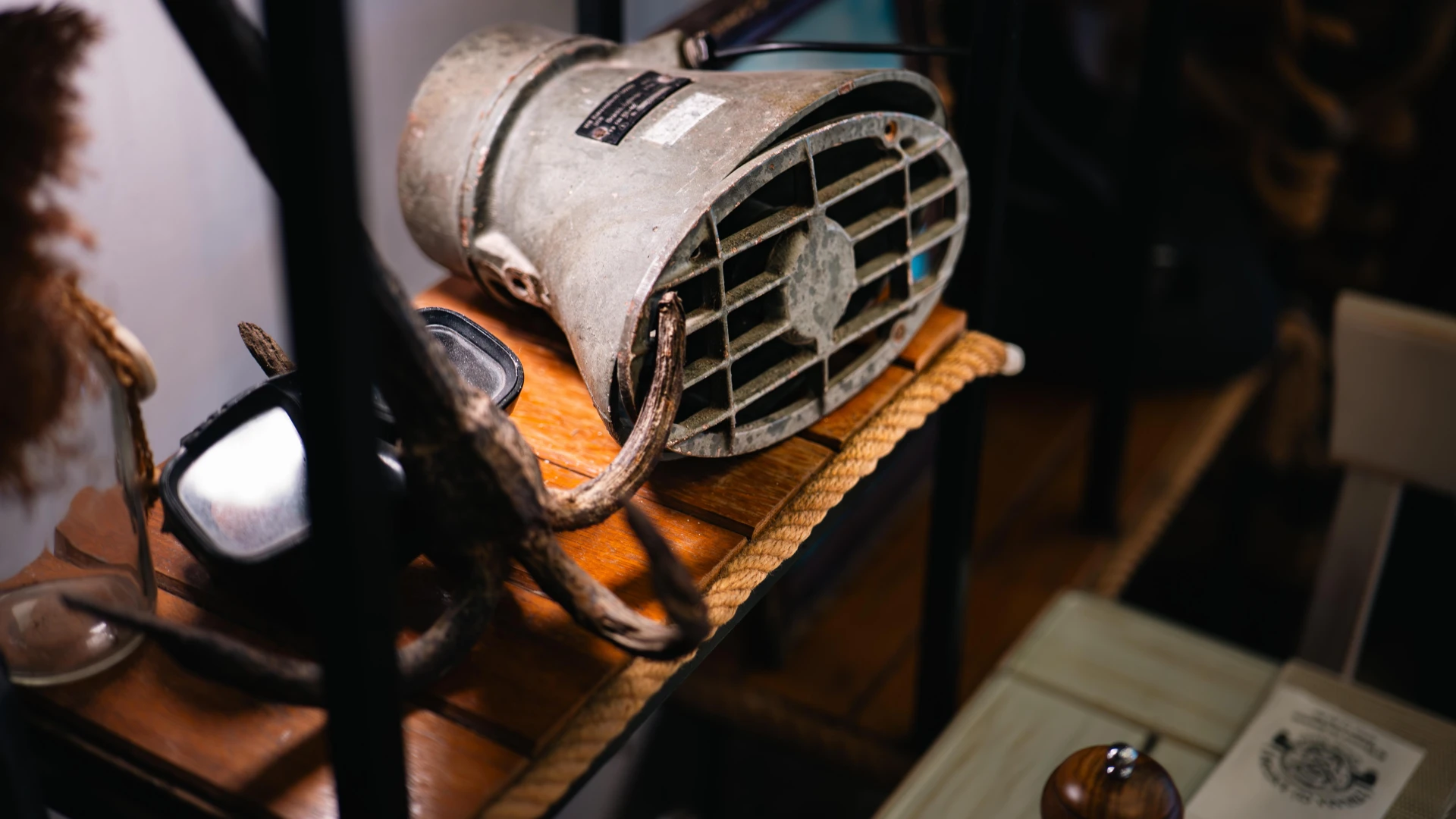 Acest difuzor naval face parte din sistemele clasice de comunicare la bord, utilizate pe nave comerciale și militare. Construit pentru a rezista condițiilor extreme de umiditate și sare, acest echipament asigura transmiterea clară a mesajelor către echipaj. Designul său robust reflectă importanța coordonării și siguranței maritime, fiind un element esențial în viața de la bordul navelor. Un artefact autentic, păstrat acum la Terasa cu Ancore.